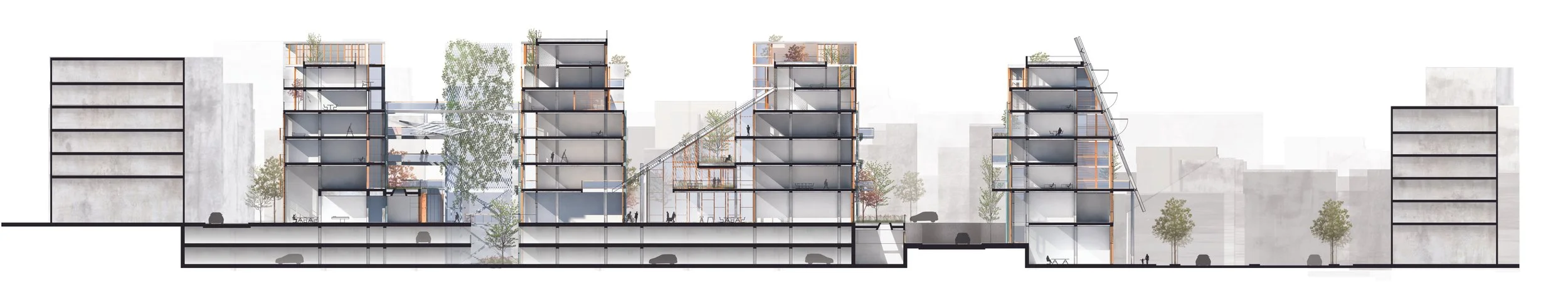 The project conserves space for light industry integrated with modern tech in the urban context to realize the importance of creating diverse employment in the city, while providing a solution for a range of diminishing employment opportunities as well as new professions and crafts, with an emphasis on local manufacturing.